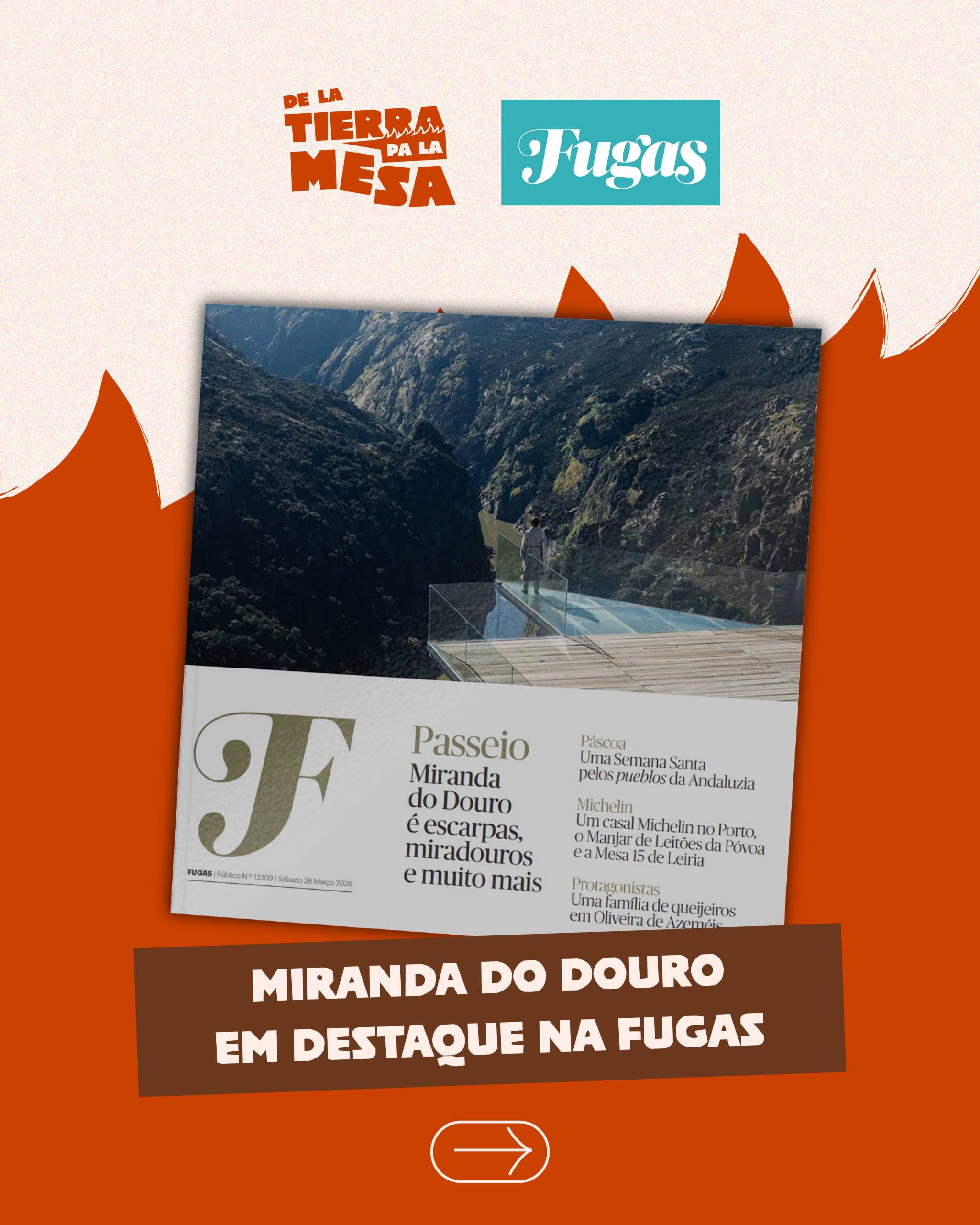 O De la Tierra pa la Mesa é um projeto promovido pelo Município de Miranda do Douro, com financiamento do NORTE 2030, que tem como objetivo valorizar o património gastronómico, cultural e territorial da Terra de Miranda, afirmando a gastronomia como eixo estratégico de desenvolvimento sustentável.